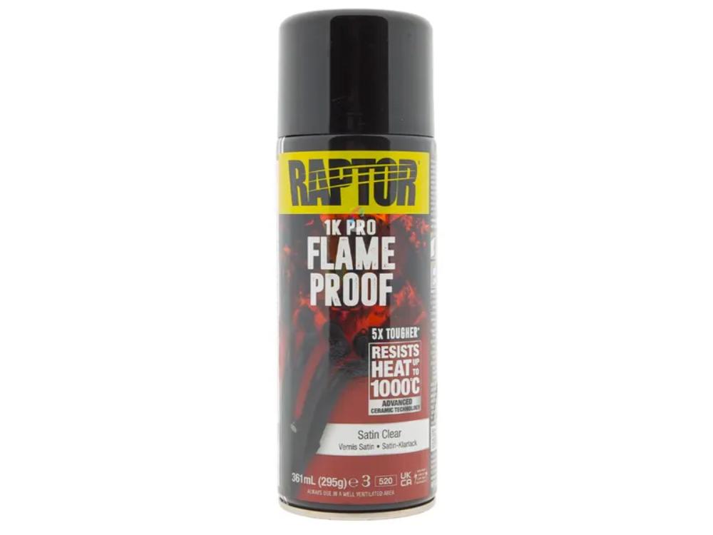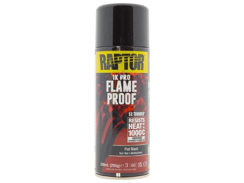 A professional quality flameproof paint, ideal for use on exhaust manifolds, headers, exhaust systems and other areas that require protection from very high heat. Raptor Flameproof is based on advanced ceramic technology and high heat -resistant pigments that withstand temperatures up to 1000°C and is 5x tougher than ordinary paints. Once fully cured it provides superior protection from heat, oil and other automotive fluids. It’s easy to use and dries fast to give an attractive, smooth finish with excellent adhesion that will not blister, flake, crack or peel. Suitable for use on all types of primed metals including steel and alloys.